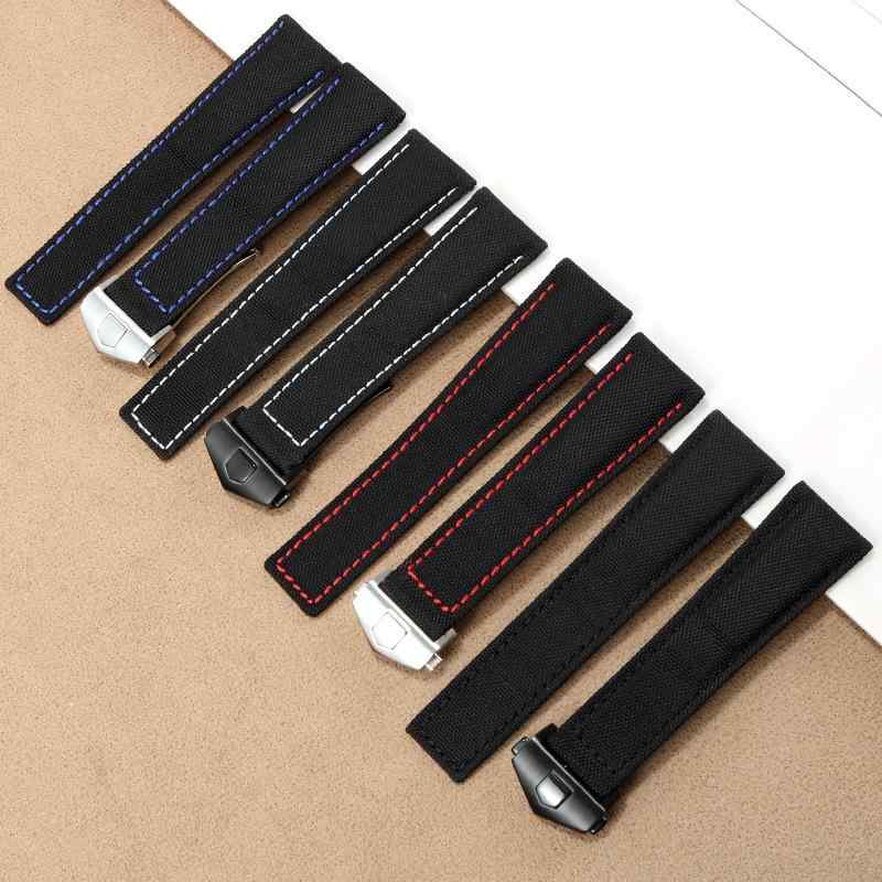 腕時計ベルト 22mm幅 キャンバス素材 Dバックル ブラック 黒ステッチ 青ステッチ 赤ステッチ 白ステッチ フォールディングバックル カジュアル シンプル 耐久性 ウォッチバンド