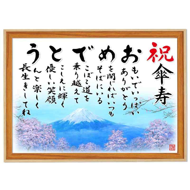 【おめでとうの詩 富士山と桜】 額入り(A4サイズ) お父さん お母さん おじいちゃん おばあちゃん メッセージ ポエム額 感謝を伝える 贈り物 感謝状 記念品