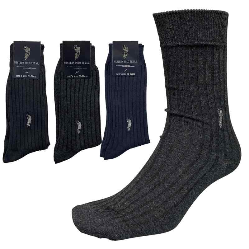 [PUICK] 4足組 靴下 メンズ ソックス 太リブ 丈長 クルー丈 ビジネス 通勤 男性 25-27cm 黒 濃紺 チャコール 秋冬