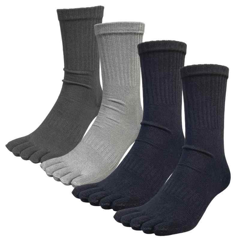 [PUICK] 厚地 5本指ソックス メンズ 五本指 靴下 表糸綿100% スポーツ ビジネス 通勤 通学 職人 外作業 Wサポート 丈夫 ムレにくい 履きやすい柔らかさ クルー ロング丈 25-27cm 4足組