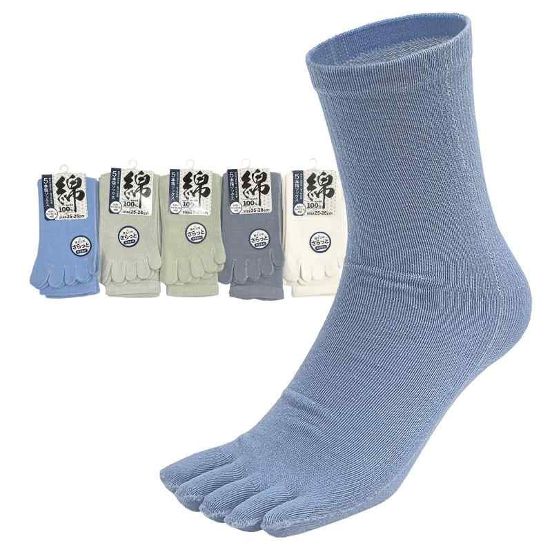 [PUICK] 5足組 五本指ソックス靴下 メンズ 5本指 25-28cm 表糸綿100 指先の通気性 吸汗速乾 防臭対策 紳士 作業 春夏 秋冬