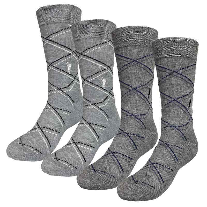 [PUICK] 4足組 靴下 メンズ ソックス 丈長 クルー丈 ビジネス 通勤 男性 25-27cm アーガイル柄 黒 グレー 秋冬 春夏 ワンポイント刺繍 サラリーマン