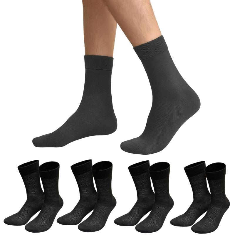 [PUICK] 靴下 メンズ ビジネスソックス 夏 消臭加工 メッシュ構造 4足セット 国内検品 25cm~27.5cm 紳士 無地 クルー丈 丈長 ブラック グレー ネイビー 蒸れ対策 吸水速乾 ストレッチ【全体メッシュでムレにくい爽快設計】蒸し暑い夏の通勤電車やオフィスでも快適。全体がメッシュ編みになっているので通気性が高く、熱や湿気を逃がしてムレを軽減します。ビジネスシーンで長時間履いても快適な履き心地をキープします。【銀イオン加工で清潔&消臭効果】汗をかきやすい夏に嬉しいのが、銀イオン(Ag+)加工による消臭効果。ニオイの原因菌の増殖を抑え、商談や外回りの後も足元の清潔感を保ちます。ビジネスマンの身だしなみに欠かせない機能です。【ストレッチ性で幅広いサイズに対応】 ポリエステル100%の軽やかな素材は伸縮性に優れ、足にぴったりフィット。表記サイズは25~26cmですが、伸びが良く、足のサイズ27.5cmのスタッフも快適に着用できました。25~27.5cmの方にもしっかり対応し、快適な履き心地【選べるセットで毎日の着回しに活躍】 無地デザインはスーツにもビジカジスタイルにも自然になじみ、ビジネスシーンをスマートに演出します。セット内容も豊富で、ブラックを中心にグレーやネイビーを組み合わせたラインナップが揃い、気分やコーディネートに合わせて使い分けが可能です。例えば、落ち着いた印象にしたい日はブラック4足セット、さりげない変化をつけたい日はグレーやネイビーをミックスしたセットなど、毎日のおしゃれに幅を持たせられます。実用性とファッション性を兼ね備えたソックスで、ビジネスマンの足元をより快適に、よりスタイリッシュに彩ります。サイズ:伸びの良いストレッチ素材で、25~27.5cmまで快適にフィット(表記サイズは25~26cm) 素材:軽やかでさらりとした履き心地のポリエステル100%。通気性・速乾性にも優れ、夏の足元を爽やかに保ちます。
