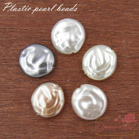 プラスチックパールビーズ コイン13mm 5色 20個 パーツ Pearl75 GreenRoseYumi