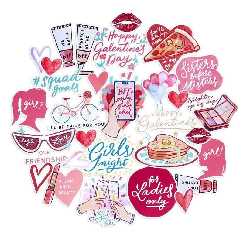 Navy Peony ハッピー・ギャレンタイン用シールセット(27枚) – 可愛く、耐水性で、長持ち | すてきな友情のためのスケジュール帳、日記、ギフト用シール女の子向けの感謝の気持ちやかわいいものが全部詰まったこのギャレンタインがテーマのシールで、一生の友達との友情をお祝いしましょう。#SquadGoalsや#TeamInnerBeautyなどのすてきな友情の言葉と、ご褒美でいっぱいの夜の女子会に向けた美容製品のシール。剥がしやすく長持ち: 新たな糊の製法で、粘着性が向上しつつ、剥がしても糊が残りません。 耐水性素材なので、一般的な手洗いには耐えますが、食洗機での洗浄は非推奨です。美しい手描きイラストのシール27枚入り。シールの最長端は平均6.5〜7.5cm。高品質のステッカー用紙に印刷され、マット仕上げのラミネート加工が施されています。写真をご覧になってサイズをお確かめください。男の子よりも女友達、唇とキス。かわいい手書きのわくわくするような友情の名言は、きっとあなたのお友達を喜ばせます。言葉遊びでいっぱいのこのシールパックで、あなたにとって友情がどれだけ大切なのかを表現しましょう