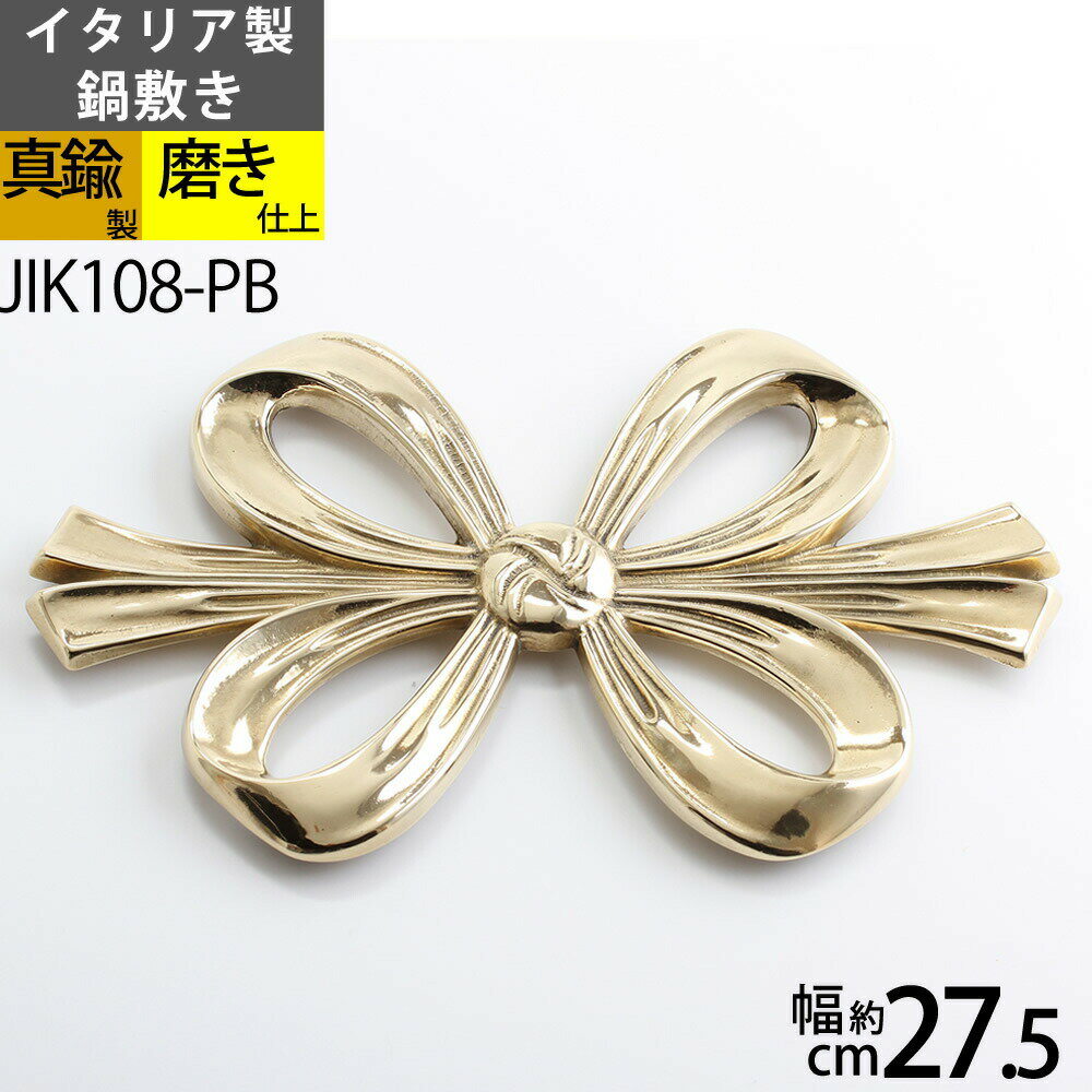 鍋敷き 4 リボン ゴールド 金色 ラウンドトリベット キッチン食卓小物【イタリア製真鍮雑貨】 真鍮製ポットスタンド POT STAND ガーデン鉢置き台 受け フラワースタンド 落としても壊れにくい金属製 JIK108-PB【RCP】【asu】