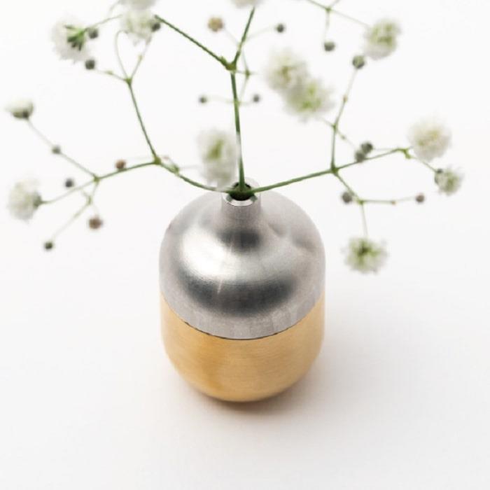 [本体材質] アルミ、真鍮[サイズ]φ30mm×H48mm壺のようなかたちの小さな一輪挿し。真鍮の抗菌作用は水を清潔に保ち、穏やかなフォルムと落ち着いた素材感の組み合わせは小さな花の美しさを引き立てます。野花や実のついた枝など、道端で出会った植物を生けてみましょう。※お求めの後、1週間以内の初期不良はご返品可能です。※ディスプレイにより、色の見え方が実際の商品と異なる場合があります。※この商品は、ご注文時点で当店在庫が無くメーカー取寄せとなる場合があります。また、メーカー完売や納期未定となる場合がありますので予めご了承ください。母の日、父の日、敬老の日、成人の日、バレンタインデー、ホワイトデー、結婚記念日、などの贈り物に。進学、卒業、入園、入学、合格、就職、新成人、誕生日、結婚、出産、昇進、栄転、還暦、古希、開店、新築、などのお祝いに。転勤、退職、退社、などの記念品に。先生、恩師、上司、お世話になった方への感謝の気持ちをこめて。引き出物、年賀状、お中元、お歳暮、フレッシュマン、フレッシャーズ、などギフト贈答品に。販促品、景品、記念品、ノベルティとして。高級筆記具、輸入筆記具、ブランド筆記具、デザイン文具、ペンケース、書斎の机上製品など、新品商品は全て正規品で安心です。ラッピング無料、税込5000円以上お買上で送料無料、万年筆・筆記具・ステーショナリー・ギフト商品のキングダムノート。