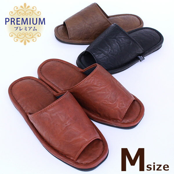 スリッパ PREMIUM プレミアム レザー調 前開き Mサイズ 合成皮革 合皮 洗えるスリッパ 来客用 日本製