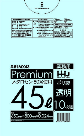 【高強度ポリ袋】メタロセン80% MX PREMIUMシリーズ MX43 1ケース800枚入
