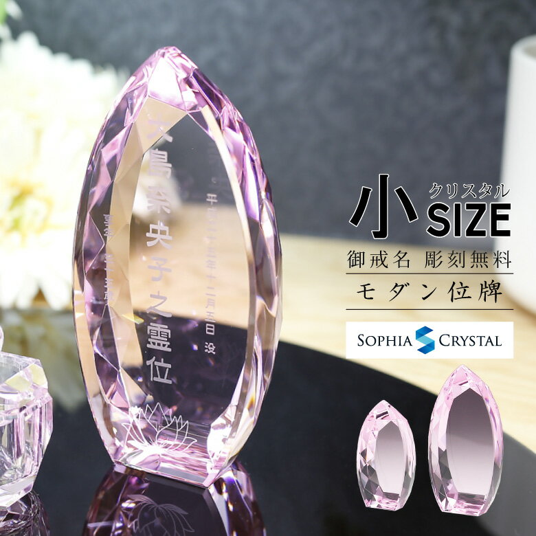 位牌 モダン クリスタル KH-10(小) 名入れ無料 ピンク お位牌 仏具 仏壇 夫婦 連名 戒名 供養 49日 法要 法事 おしゃれ 現代位牌 家具調 手元供養 現代仏壇 ミニ仏壇 小型 慰霊 没日 俗名 人間 記念品 戒名彫刻代金込み 彫刻 レーザー 文字色 金 銀 黒 ダイヤ しずく型.