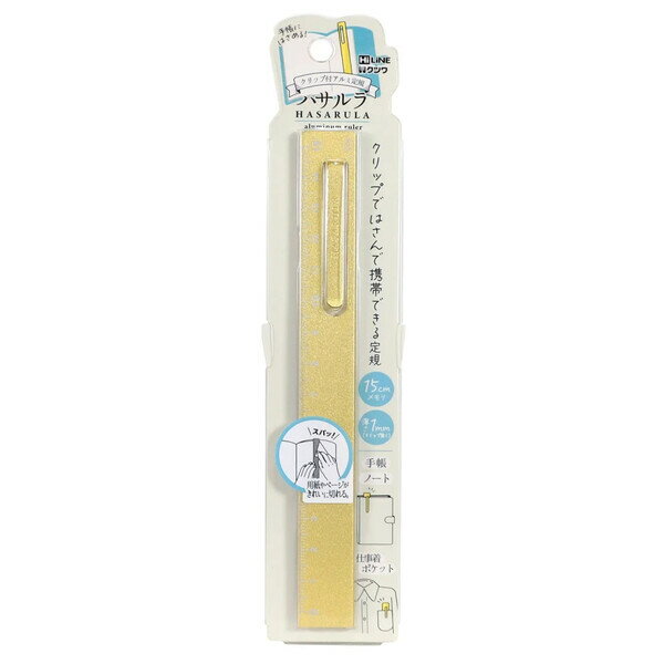 クリップ付 アルミ定規 ハサルラ ゴールド 薄型 スリム レーザー印刷 メモリ 手帳 ノート 野帳 仕事着 バッグ 携帯 クツワ - メール便対象