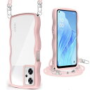OPPO Reno9 A/OPPO Reno7 A ケース クリア ショルダー OPG04 カバー うねうね 透明 人気 かわいい 耐衝撃 スマホケース 首かけ 肩掛け 薄型 軽量 TPU ストラップ付き 取り外し可能 長さ調整可能 ワイヤレス充電対応(ピンク)