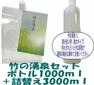送料無料!竹の洗たく洗剤 【 竹の湧泉セット 】ボトル1000ml+詰替え3000ml【アイシード】【製造元エジカルバンブー】