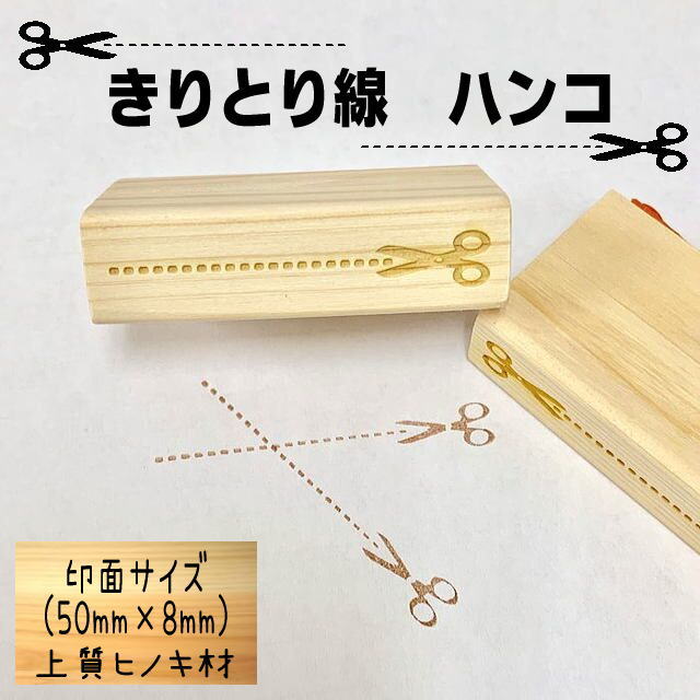 【ゴム印ハンコ】キリトリ線ハンコ (50mm×8mm) ハンドメイド・手作り作品【送料無料】