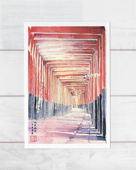 伏見稲荷 千本鳥居( 神社仏閣 和風 参道 水彩画 風景画 )★当店オリジナル★