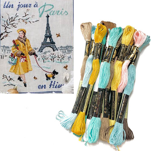刺繍糸は、クロスステッチ図案 "Un jour a Paris en hiver" (パリの冬のある日)の刺繍糸セットとなります セット価格は本数分のお値段です。(税抜価格×本数+消費税)このキットは、 こちらよりお買い求めいただけます。