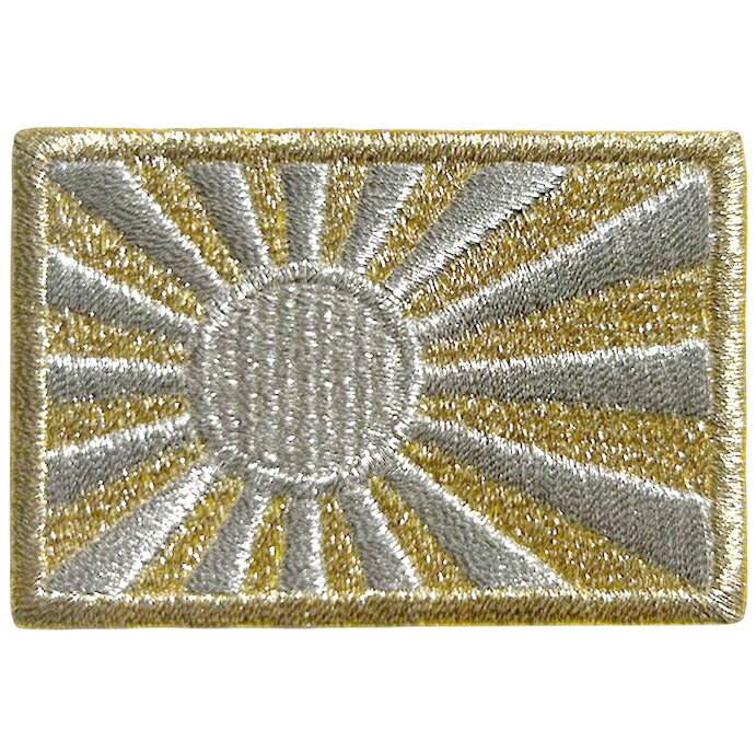 旭日旗 十六条旭日旗 お気に入りのアイテム(カバン、ジャケット、帽子)にDIY(DO IT YOURSELF / 何でも自身で作る精神)でペタペタ貼って自分なりのスタイルが楽しめるアイテム『ワッペン』! アイデア ひとつ ワッペンはアイデア一つで色々な楽しみ方が出来ます。 持っているアイテム合わせて自分だけのオリジナリティー確立にどうぞ。 旭日旗とは 旭日旗(きょくじつき)は、日章と旭光を意匠化した日本の旗。1870年に大日本帝国陸軍の陸軍御国旗(軍旗)として初めて使用され、1889年に大日本帝国海軍の軍艦旗としても採用された。現在は、陸上自衛隊で自衛隊旗、海上自衛隊で自衛艦旗として旭日旗が使用されている。 【素材】ポリエステル 100% 【サイズ】 【L】縦38mm x 横55mm 【XL】縦45mm x 横65mm 【XXL】縦55mm x 横80mm 生地 ゴールド(金) x 後光 シルバー(銀)その他の関連アイテム