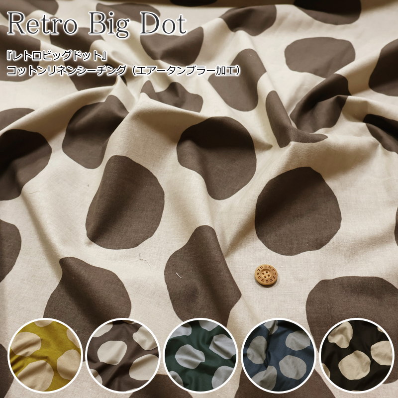 『Retro Big Dot≪レトロビッグドット≫』コットンリネンシーチング(エアータンブラー加工)素材:コットン85%リネン15% 生地幅:約108cm水玉/キッズ/大人/綿麻/生地/ハンドメイド/ウェアー/小物/インテリア/
