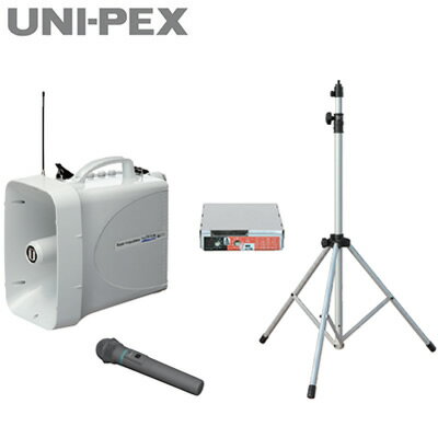 TWB-300+WM-3400+SDU-300+ST-110ユニペックス UNI-PEX 防災用品メガホン サウンドリピーターセット防滴スーパーワイヤレスメガホン(チューナー内蔵)+防滴型ワイヤレスマイクロホン+SDレコーダーユニット+メガホンスタンド