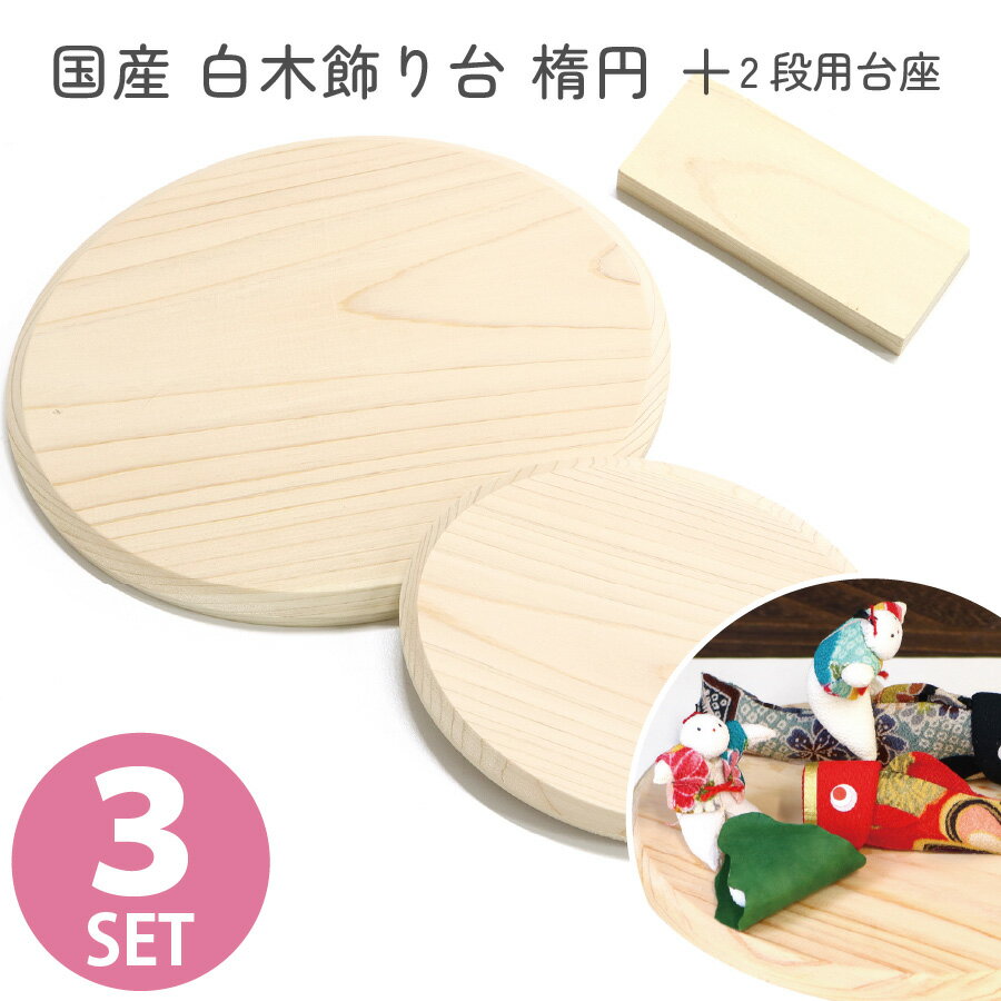 白木飾り台 国産 楕円形 3点セット +2段用台座付き 雛人形 コンパクト おしゃれ 親王飾り 小芥子 蒼峰 金茶流水 ハニーブラウン飾台 白木飾台 親王飾 ひな人形 雛祭り 初節句 ひなまつり インテリア 和モダン
