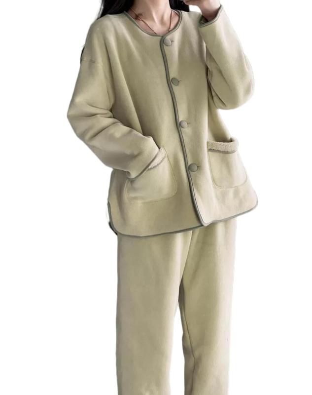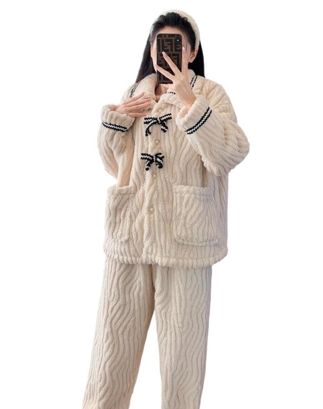 [newsight] レディース パジャマ ルームウェア ふわふわ セットアップ 暖かい もこもこ あったか フランネル 可愛い 女性用 ホームウエア 上下セット 部屋着 室内着 長袖パジャマ 2点セット 防