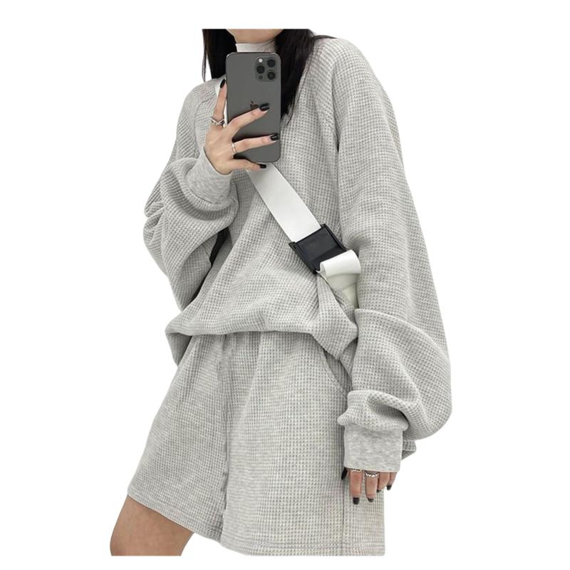 [newsight] レディース ルームウェア 部屋着 長袖 カットソー トップス ショートパンツ 2点 セット (2XL, グレー)「柔らかい上質」表面はワッフルタイプ素材も硬くなく柔らかい感じだったので着やすかったですくすんだグレーで柔らかい印象です。肌触りも良く、着心地も良いです。【カラー】グレー 【サイズ】M・L・XL・XXL「万能の部屋着が登場」かわいいデザインのルームウェアです。長袖+ショートパンツ 上下セットで近くのコンビニやスーパーマーケットにも行ける服です。ゆったりのサイズなのでリラックスできてよいです。肌さわりもやさしく着用感もいい商品です。洗濯機使用しても特に問題ありませんでした。「高品質な生地」着心地もよく肌にもやさしいルームウェア、長期間やさしい着心地を楽しめます。通気性が良く、やさしい触り心地で、シンプルで着心地が良いです。「快適なパジャマ」短すぎないショートパンツで動きやすさ抜群ウエストゴムで楽ちん仕様。ズボンは伸縮性のあるウエストゴムで、締め付けず快適な穿き心地です。「広い適用性」オーバーサイズ感でゆったりとした着心地。ダボっとしたシルエットが女性らしい。リラックスタイムはもちろんのこと、ワンマイルウェアにもぴったりな一着。長いシーズン着用していただけます。
