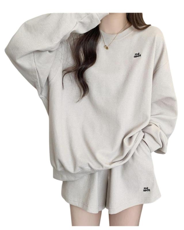[newsight] レディース ルームウェア 部屋着 長袖 カットソー 無地 ゆったり トップス ショートパンツ 2点 セット「柔らかい上質」表面はワッフルタイプ素材も硬くなく柔らかい感じだったので着やすかったですくすんだグレーで柔らかい印象です。肌触りも良く、着心地も良いです。【カラー】グレー/ブルー 【サイズ】M・L・XL・XXL「万能の部屋着が登場」かわいいデザインのルームウェアです。長袖+ショートパンツ 上下セットで近くのコンビニやスーパーマーケットにも行ける服です。ゆったりのサイズなのでリラックスできてよいです。肌さわりもやさしく着用感もいい商品です。洗濯機使用しても特に問題ありませんでした。「高品質な生地」着心地もよく肌にもやさしいルームウェア、長期間やさしい着心地を楽しめます。通気性が良く、やさしい触り心地で、シンプルで着心地が良いです。「快適なパジャマ」短すぎないショートパンツで動きやすさ抜群ウエストゴムで楽ちん仕様。ズボンは伸縮性のあるウエストゴムで、締め付けず快適な穿き心地です。「広い適用性」オーバーサイズ感でゆったりとした着心地。ダボっとしたシルエットが女性らしい。リラックスタイムはもちろんのこと、ワンマイルウェアにもぴったりな一着。長いシーズン着用していただけます。