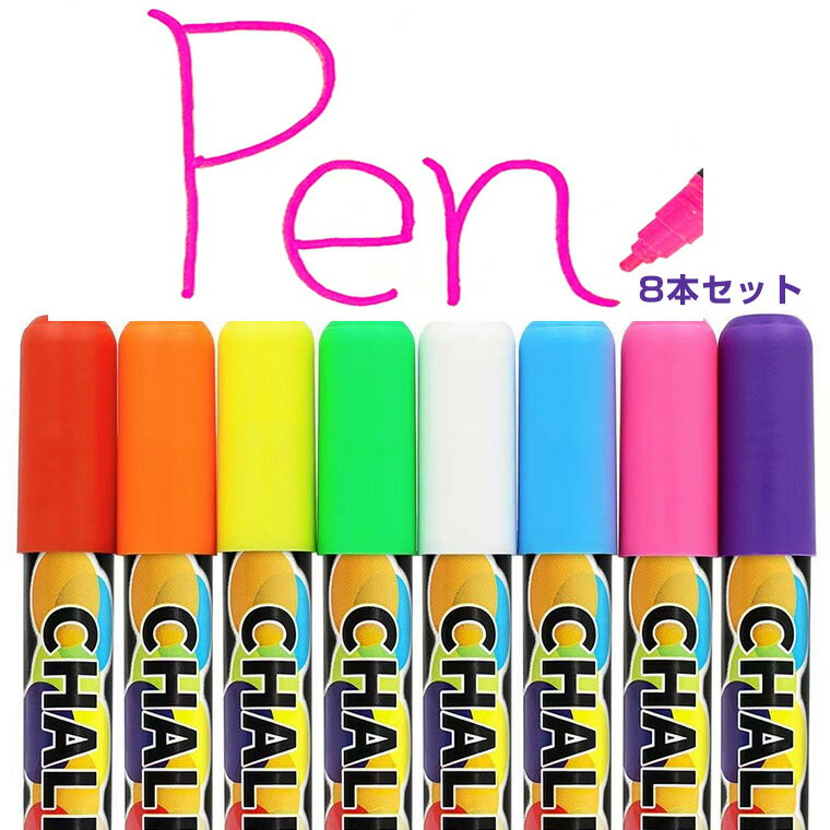 蛍光マーカー 蛍光ペン 中字 8本セット オレンジ、ピンク、白、赤、青、紫、緑、黄 LED看板用 光る ブラックボード サインボード ホワイトボード 黒板 手書きボード