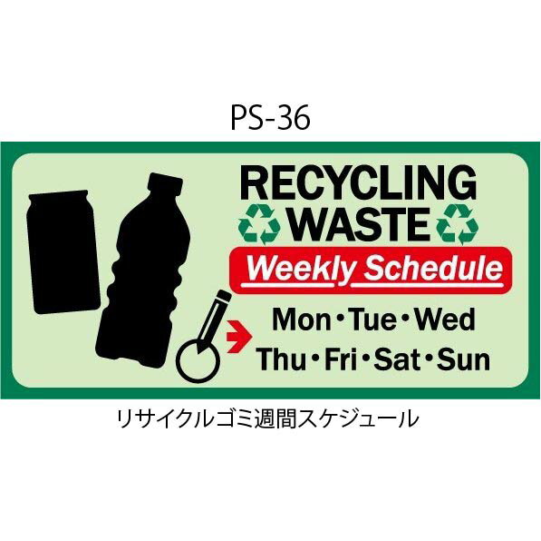 ◆ サインプレート ステッカー [ リサイクルゴミ 週間スケジュール ] インテリア シール デカール 看板 壁紙 クロス アメリカン雑貨 車 クルマ ガレージ ガーデニング 注意喚起 店舗用品 メール便対応 PS-36