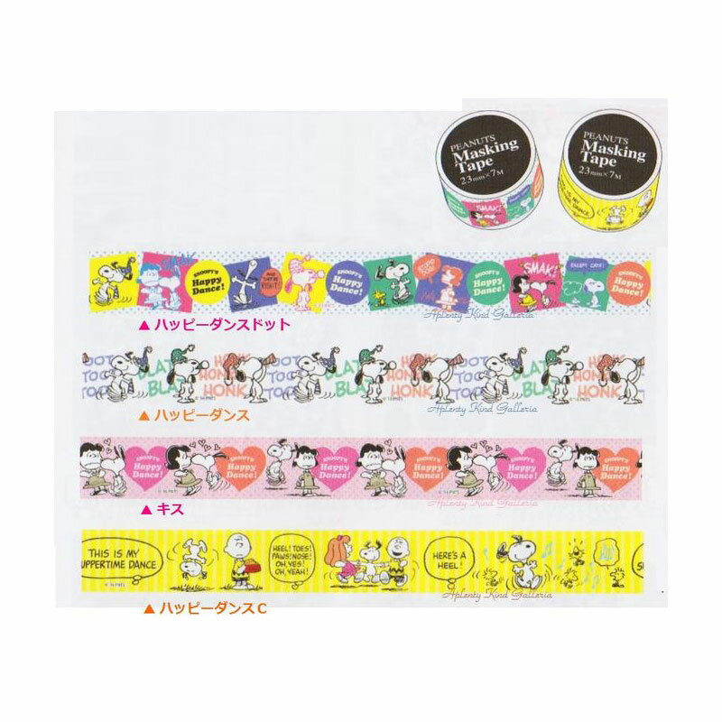 【Snoopyグッズ】S&C スヌーピー マスキングテープ 【ご選択:ハッピーダンスドット(SMT7)ハッピーダンス(SMT-8)キス(SMT-9)ハッピーダンスC(SMT-10】★幅23mmのスヌーピーのマステスヌーピーグッズ/ストレートタイプ/Peanuts★【3cmメール便OK】
