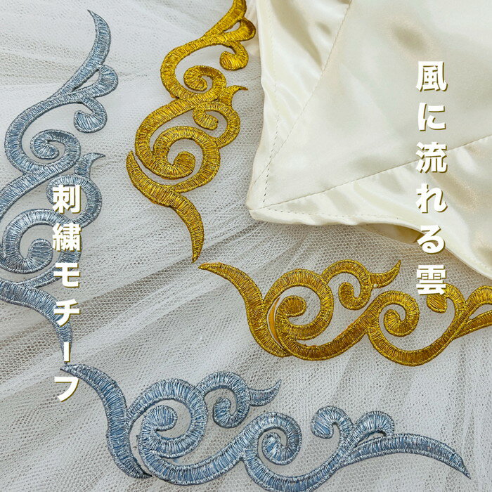 【1ペアセット単位】 刺繍モチーフ 左右対称1ペア アップリケ ワッペン モチーフ レース 刺繍 唐草 アラベスク柄 衣装 衣装材料 ステージ衣装 ウェディング 服飾資材 材料 装飾 風に流れる雲 縦約4.4cm横約17.8cm SMT2412017