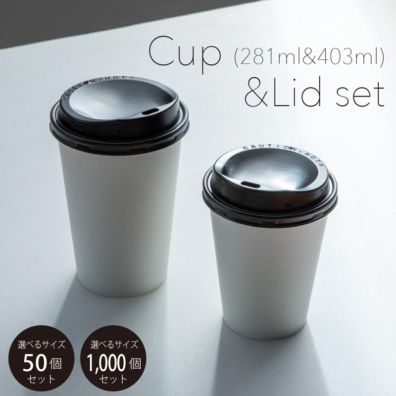 〈選べるサイズ本体+蓋セット〉ホット用 白紙コップ+黒リッドのスタイリッシュなセット(50セット・1000セット)SMT-400無地 403ml SMT-280無地 281ml 紙コップ カップ フタ ドリンキングリッド カップ フタ付き ホットコーヒー