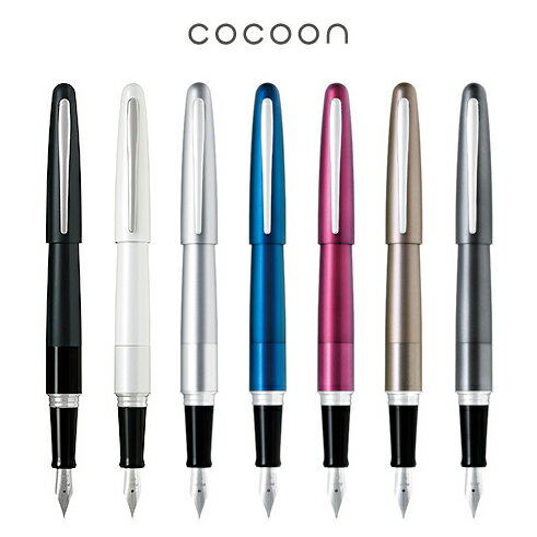 ●メール便対応不可です。 ●お取り寄せ商品です!入荷に営業日2〜5日程かかります。 「cocoon コクーン」 繭のように美しい曲線で構成されたフォルム コクーンは、今を生きる20〜30代の感性をダイレクトに刺激する、万年筆を中心とした新ブランドです。 未知の世界へ羽ばたくとき、大人として社会に踏み出すとき、自分らしさを貫くと決めたとき。 コクーンはきっと、未来を描き出す力を与えてくれます。 <全7色> ・ブラック ・ホワイト ・シルバー ・ブルー ・ボルドー ・チタン ・メタリックグレー <商品仕様> 【素材】 ペン先:特殊合金 軸さや:黄銅・塗装 【サイズ】 ・長さ:最大径φ 13.2mm 全長 138mm ・最大胴軸径:直径約12mm 【機構】 ・カートリッジ/コンバーター両用式 ・キャップ式 【付属品】 ・インクカートリッジ(黒) 1個 ・専用ギフトケース Z-CS-CO