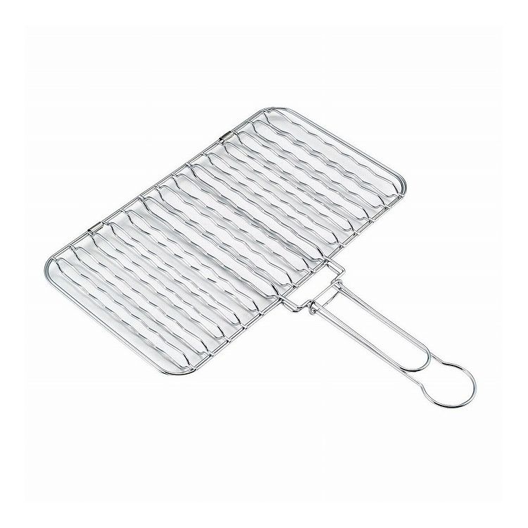 形崩れしにくく、両面がキレイに焼ける焼き網。食材を挟んで焼く合わせ焼き網だから、ラクにきれいに裏返せます。ワイドタイプなので、秋刀魚をまとめて2〜3匹焼けます。網焼きするとボロボロに崩れる皮や外側がキレイなまま炙れます。肉や野菜、ウインナーも楽しめます。合わせず、広げて大きめのアミとしても使えます。調理を簡単にしたいキャンプの朝食に、食パンをトーストしたり、残りの具材を挟んでホットサンドも作れます。サイズ(約)全長35×幅30×高さ3cm網部分サイズ30×17.5cm(閉じた状態)材質:鉄(クロムメッキ)重量(約)240gガステーブルやカセットコンロ、屋外用簡易ガスコンロでは使用しないでください。ガスコンロが故障や破損したり、ガス容器が加熱して、爆発・火災・ヤケドなどの原因になります。使用後は、急冷(水などへの投入)を避けて自然放置で冷却し、完全に冷えていることを確認してから洗浄してください。電磁調理器(IH)などの電気器具には使用できません。【代引きについて】こちらの商品は、代引きでの出荷は受け付けておりません。【送料について】北海道、東北、九州は送料を頂きます。沖縄、離島は配送不可。