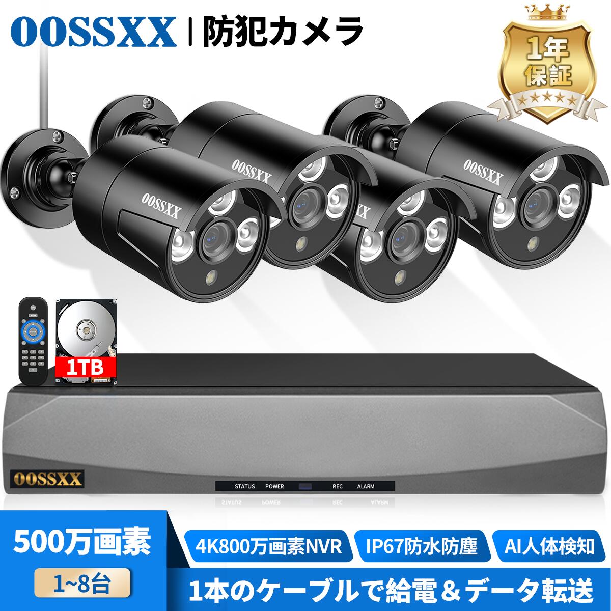 【800万画素録画機・4TB HDD内蔵】OOSSXX 防犯カメラ 屋外 家庭用 防犯カメラ 有線 防犯カメラセット 500万画素 防犯カメラ poe 屋外 電源不要 防犯カメラ 屋外 有線 監視カメラ LAN 防犯カメラセット 監視カメラセット 屋内 屋外