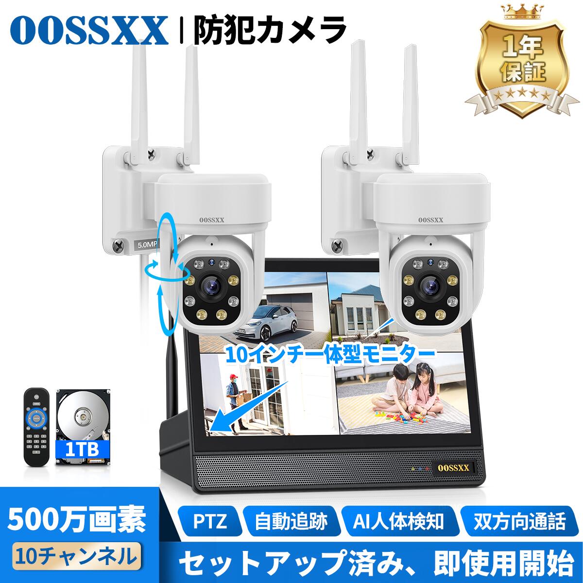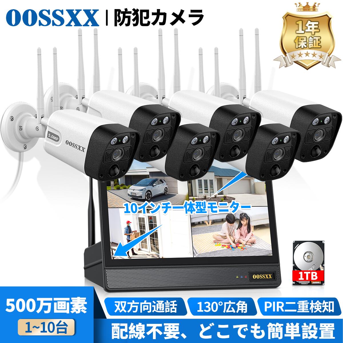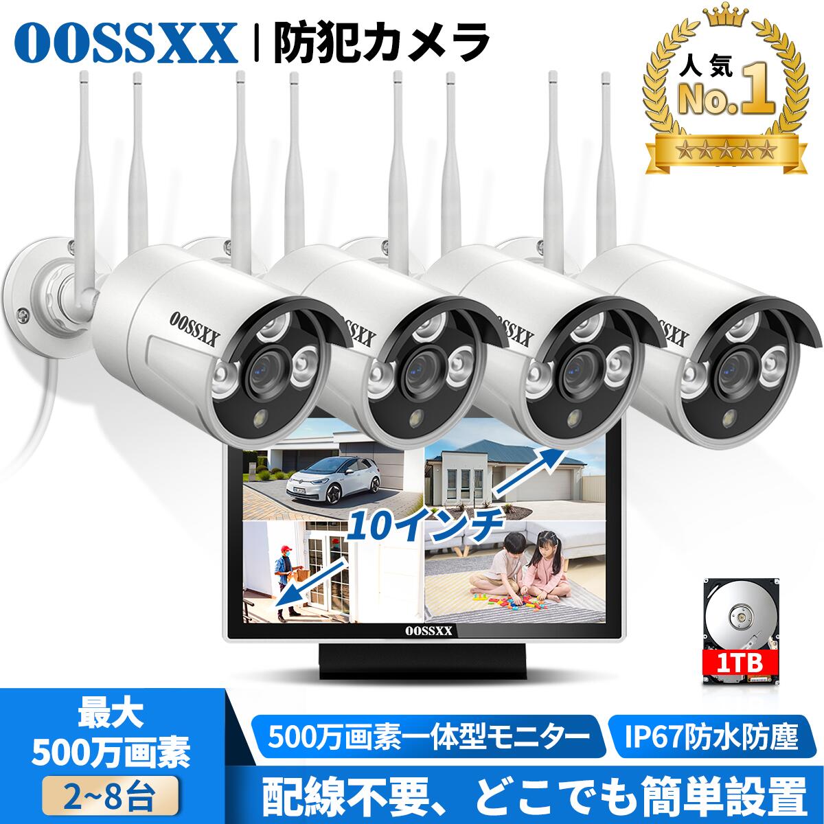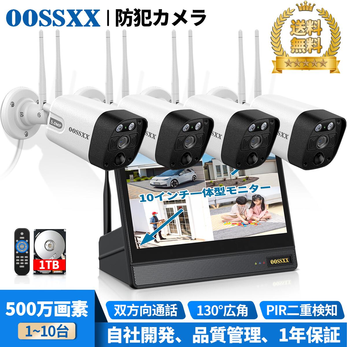 【当店1位!】OOSSXX 防犯カメラ ワイヤレス 屋外 工事不要 防犯カメラセット ワイヤレス 防犯カメラ wifi 無線 家庭用 監視カメラセット 防犯カメラ 屋外 家庭用 10ch 1~10台 工事不要 ネット環境なし 不要 一体型モニター NVR 録画機 HDD 内蔵 1年保証