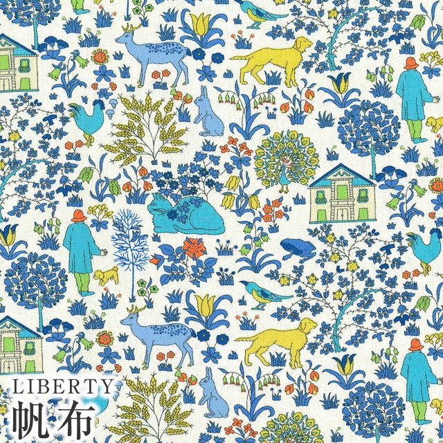 LIBERTYリバティプリント 国産11号帆布生地<Symbols>(シンボルズ)【ブルー】DC32256-J22I《メルシー創業70周年記念柄 Merci's Platinum Jubilee 2022》