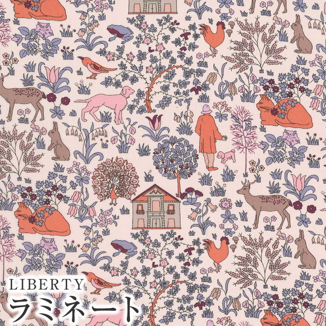 LIBERTYリバティプリント 国産つや消しラミネート生地<Symbols>(シンボルズ)【サーモンピンク】(ビニールコーティング生地)MATLAMI-DC32256-J22D《メルシー創業70周年記念柄 Merci's Platinum Jubilee 2022》