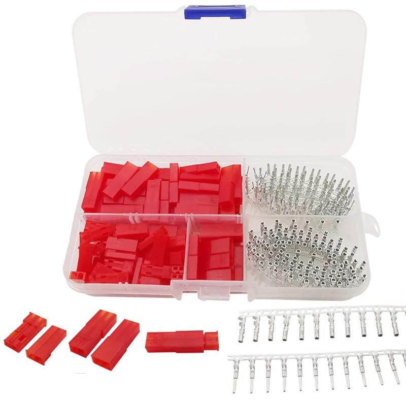 BEHOSHI 300個 JST SYP コネクターキット 2.54mm 2ピン オスとメスコネクタ JSTプラグ プラグピン 赤色ハウジング ターミナルコネクターキット 50セット
