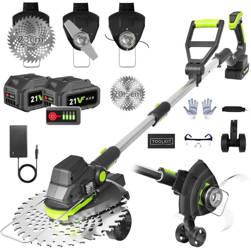 充電式草刈り機【独自の草巻き防止構造 2025年新登場 1台3役 草刈り・縁刈り・灌木切断 熊本氏監修】21Vコードレス電動草刈機 両用補助輪 衝突防止 ブラシレスモーター 刈刃径230mm 電量表示