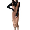 【送料無料】[amandpm] ニットワンピース ジャンパースカート サロペット ニット レディース ワンピース ノースリーブ ロングベスト 膝丈 ニットベスト vネック タイトワンピ 体型カバー 春 秋 冬 カーキ M