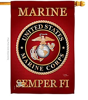 【中古】【輸入品・未使用】US Marine Corps House Flag USMC Semper American Military Veteran Retire Decorative Fi Armed Forces Official Licensed United State 28" x