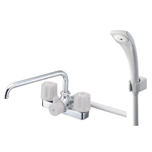 三栄水栓 ツーバルブデッキシャワー混合栓 SK710上向きパイプで空間広々。