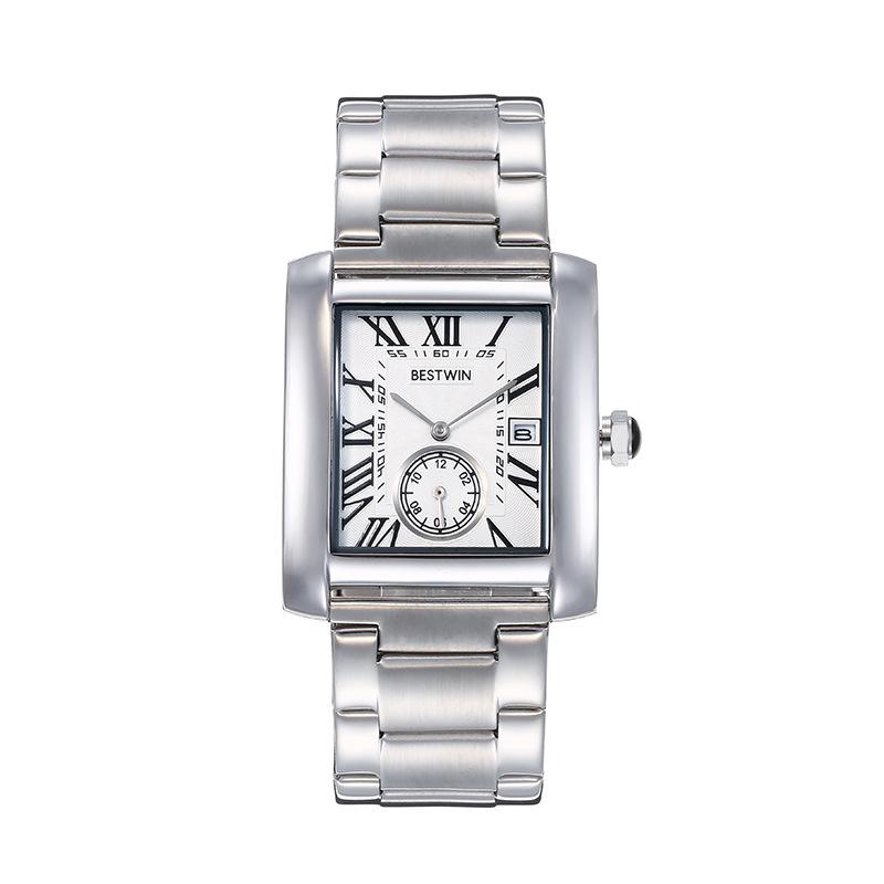腕時計 メンズ BESTWIN クラシック 定番 スクエア 四角 クォーツ ウォッチ 防水 日付表示 スモールセコンド ステンレスバンド レザーベルト ビジネス カジュアル ファッション