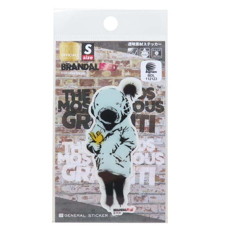 匿名のストリートアーティスト 『バンクシーの作品にフィーチャーしたブランドBRANDALISED™』 のステッカーに、第二弾が登場! 話題のアートは貼るだけでお洒落な雰囲気に! スマホケースにも入るサイズ感が嬉しい♪ クリアカラーなので、透明なガラス瓶や窓に貼るのもオススメです◎ ※白引き印刷なしの仕様ですので、濃色ベースに貼ると柄が見えにくくなります。 こちらの商品は耐水、耐光性のある透明素材のステッカーです。 自社工場製品だからこそのクオリティ! 他輸入品とは一線を画した、高品質な仕上がりの商品です。 屋外はもちろん、PC、スマホ、タブレット、ノートや手帳、 マイボトルやクリアファイル、スーツケースなどにも! 様々なシーンでお楽しみ下さい。 ●サイズ 幅35mm×高さ78mm(本体サイズ) ●製造国 日本(自社製造) ●備考 株式会社ゼネラルステッカーが企画・製造・販売しております、 ライセンス商品です。 ©Full Colour Red Ltd.