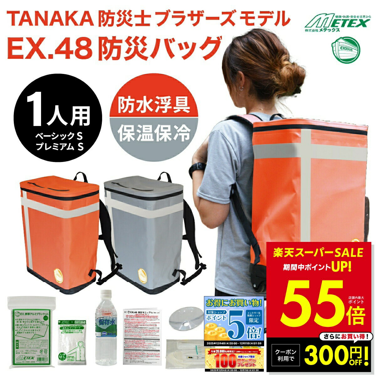 【P最大55倍&クーポン!! 〜12/11 1:59】防災バッグ METEX EX.48 1人用 浮具になる防災バッグ TANAKA防災士ブラザーズモデル 非常用リュック 非常用バッグ 防災リュック 防災セット 防災グッズ 非常時用 緊急用 持ち出しp10