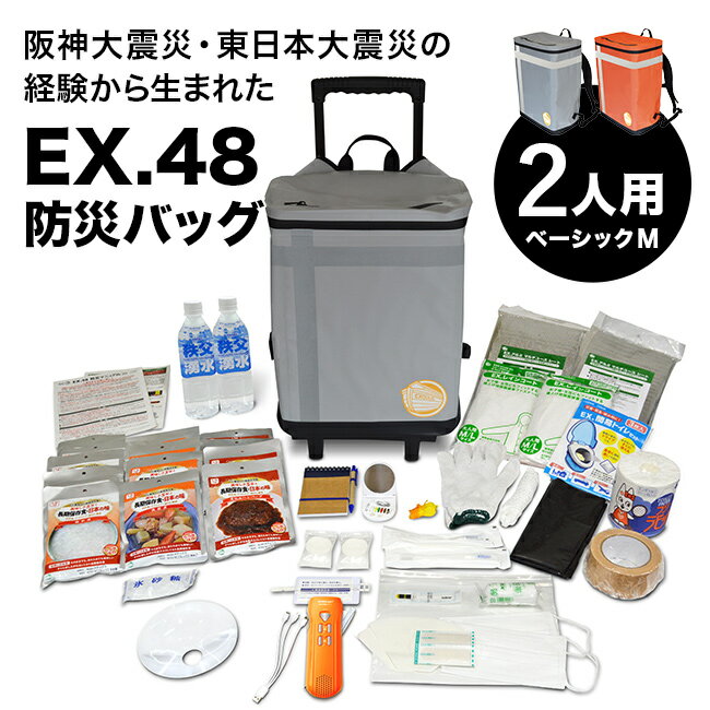 【特典あり】EX.48 防災バッグ TANAKA防災士ブラザーズモデル ベーシックM 2人用[非常用持ち出し袋 キャリー リュック 災害備蓄 セット 非常持出袋 キャリーケース リュックサック 地震 台風 豪雨 災害 防災リュック EX48] 1-2W