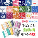 【送料無料】 小紋柄手ぬぐい 選べる4枚 動物柄 日本製 綿100% 男女兼用 手ぬぐい てぬぐい おしゃれ ふきん 縁起柄 和柄 和雑貨 かわいい タオル ハンカチ 剣道 面手ぬぐい 手芸 マスク 材料 熱中症 敬老 洗顔 粗品 プレゼント ギフト 夏 教材 家庭科