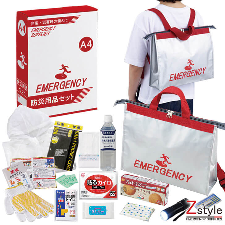 ゼニス トートリュック避難セット TTR-40F 最低限必要と思われる防災グッズをセットした避難セット。 地震・災害などにより急いで避難を要する際に、一時避難場所又は広域避難場所までの移動を素早く行う為、最低限必要と思われる防災グッズをセットした避難セット。軽量のトート型リュックタイプで両手を空けて行動出来ます。A4サイズパッケージ入りで書棚やデスクの引き出しにも収納可能! 内容物 避難用トートリュックバッグ、 9光ライト (電池別売)、 ホイッスル、 携帯トイレ(大小兼用)1P、 ウェットティッシュ(10枚)、 ポケットティッシュ、 防災ハンドブック、 防寒レインコート、 軍手、 エイトバン(大小×各2)、 使い捨てカイロ、 マスク、 備蓄用飲料水500ml、 ライスクッキー 商品サイズ 295×370×100mm 商品重量 約1050g 生産国 中国、日本 材質 不織布、ほか 電源 単四乾電池3本使用(別売) 賞味期限(食品) 製造日より5年 アレルギー表示28品目 アーモンド(ライスクッキー) 広告文責 株式会社ルーマニア/03-5876-8107 【メーカー:ゼニス】