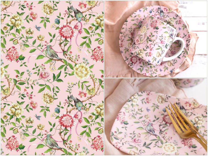 ポーセラーツ 転写紙 【白磁用】The Garden ピンク A3サイズポーセラーツ ポーセリンアート用転写紙 転写シート ポーセリン アート ポーセラーツ転写紙 お花 花柄 シノワズリ
